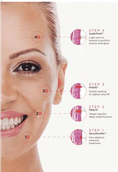 Durch die induzierte Kollagenbildung nimmt auch das Volumen zu. Die vier Dimensionen von Fotona 4D™ weisen auf vier unterschiedliche Verfahrensmethoden hin: SmoothLifting™, FRAC3®, PIANO® und SupErficial™, mit deren Kombination Ergebnisse erzielt werden können, wie sie bisher nicht möglich waren.